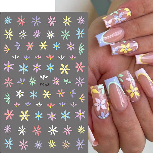 Colorful Flower 3D Nail Stickers Green Leaf Floral Daisy Spring Nail Art Water Decals Sliders Manicure Butterfly Nail Tips Decor
