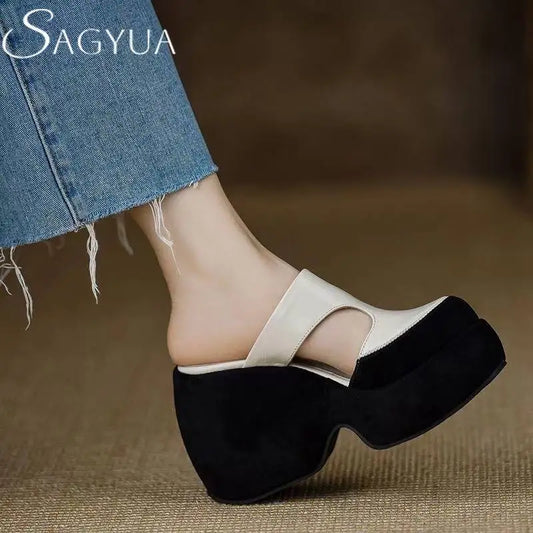 Super High Heels Platferm Slippers Women Sandala Mules Shoes Summer Slingbaek 2025 Brand Wedges Shoes Dress Designer Mujer Pumps