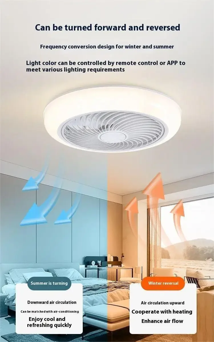 Bedroom fan lamp, invisible silent, home remote control, modern and simple ceiling lamp