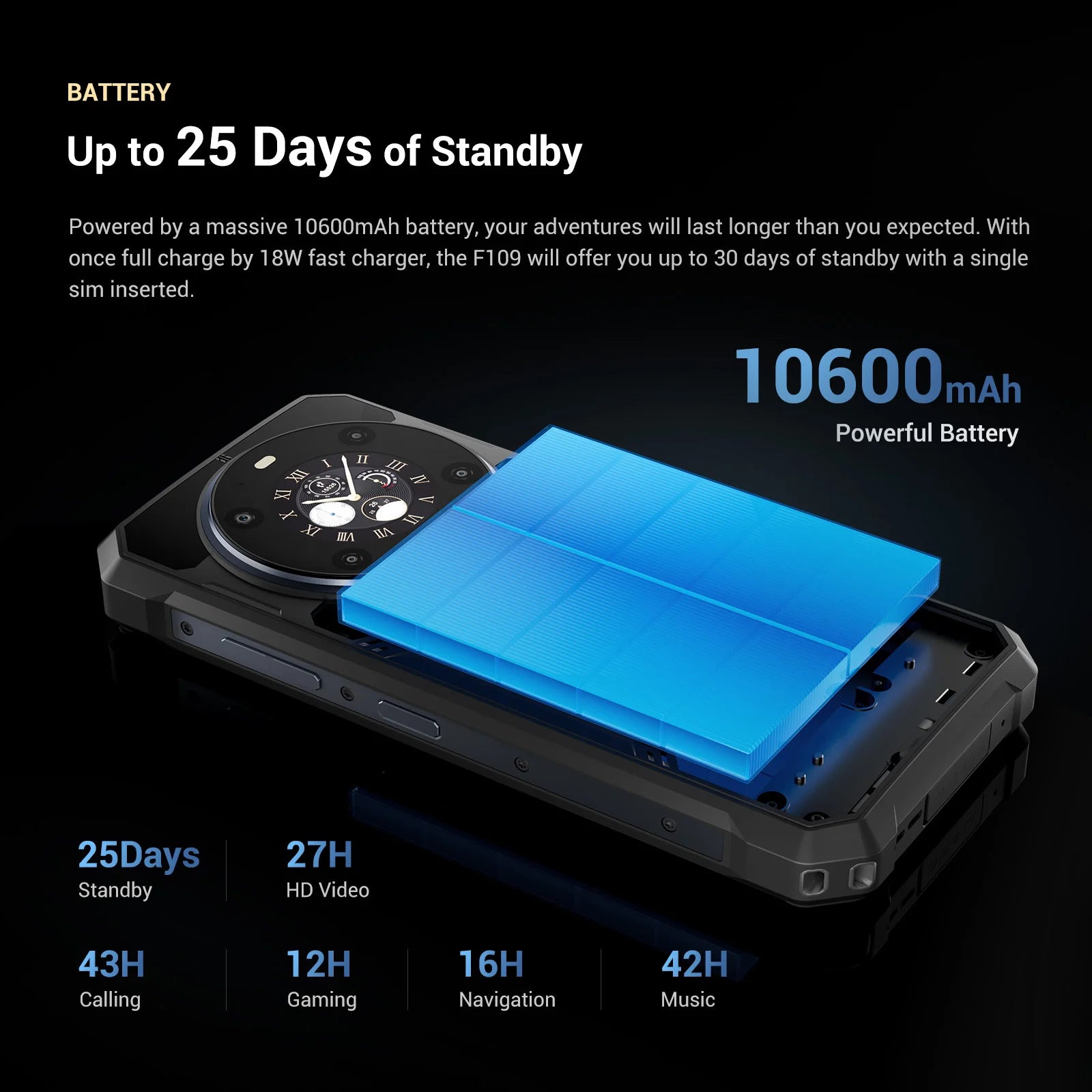 Fossibot F109 5G Rugged Phone 6.745" Android 14 8GB+256GB Mobile Phone 10600mAh 64MP NFC Smartphone