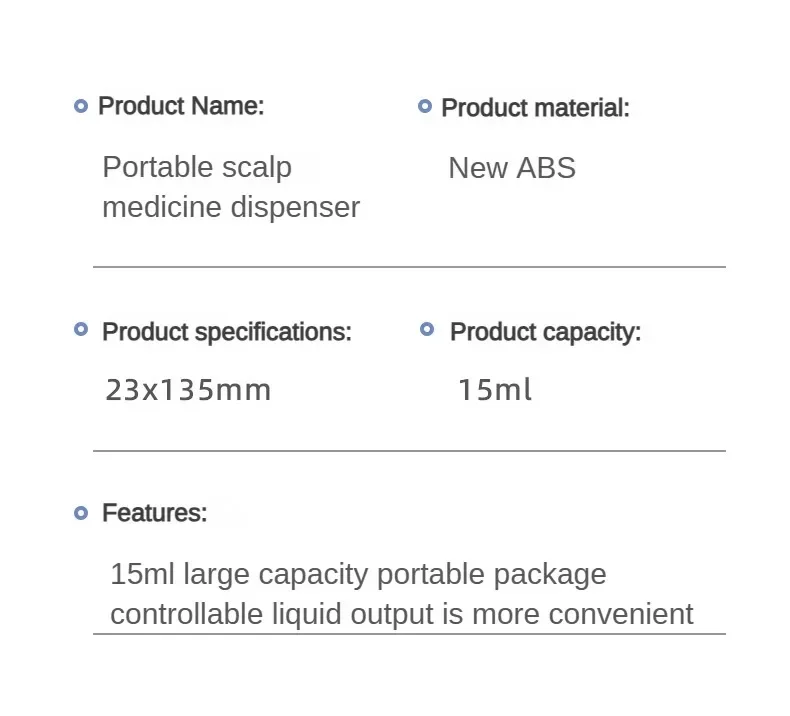 1.Repeatable and washable,the opening filling hole of the scalp applicator comb is 1-15ml in size, facilitating liquid filling. it is made of abs material, durable and waterproof.